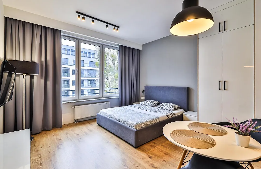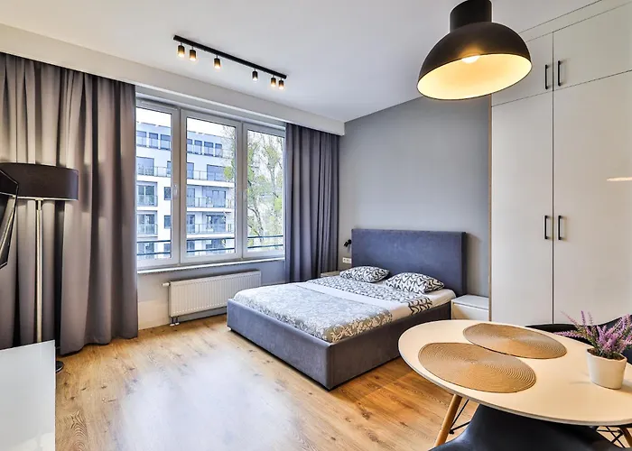 The apartment lies nearly 25 minutes on foot from the Fragment of the Ghetto Wall. A 30-minute walk will take you to the city centre. PGE Narodowy Home Stadium is within a 6-km distance of the 30 m² apartment.